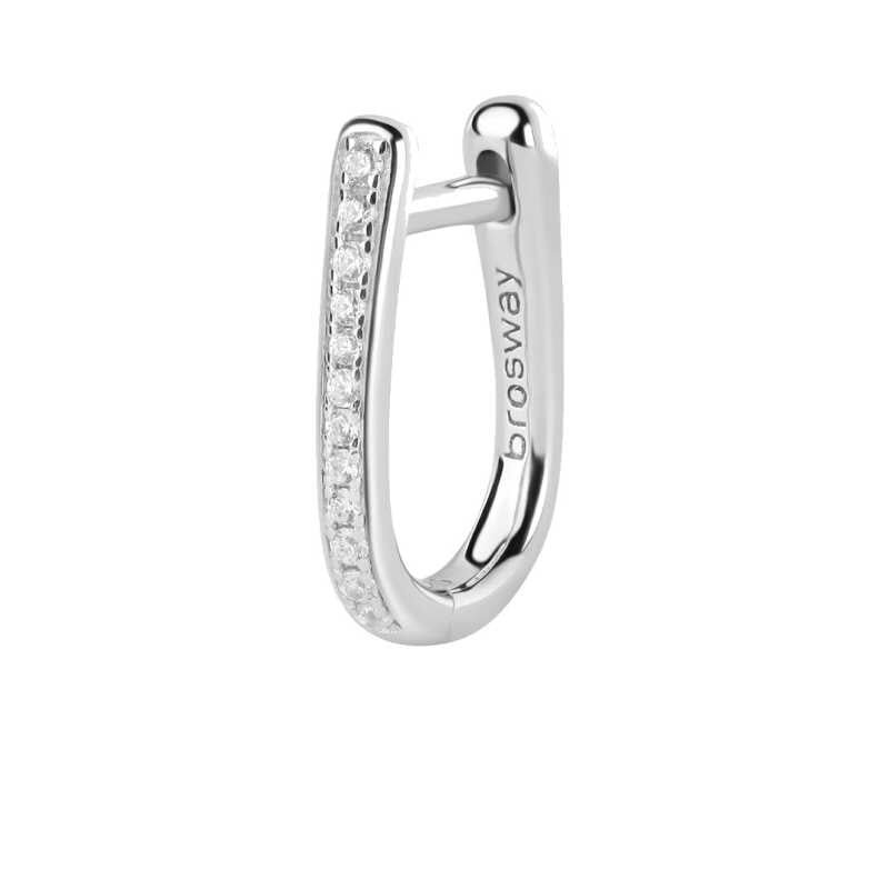 Tato elegantní single náušnice značky Brosway je vyrobena z kvalitního stříbra s rhodiovaným povrchem, který nejen chrání před alergickými reakcemi, ale také zachovává dlouhotrvající lesk šperku. Osazena čirými kubickými zirkony, náušnice působí vkusně a sofistikovaně. S délkou 1,2 cm a patentním...