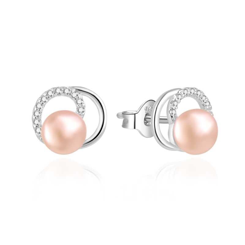 Stříbrné náušnice s pravou růžovou perlou a zirkony AGT-E216PW-PPI Agato
