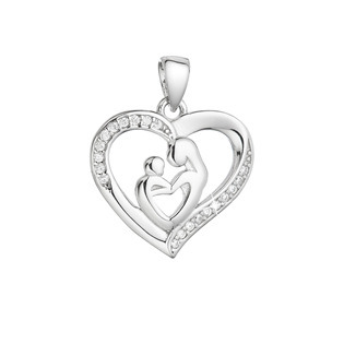 Stříbrný srdíčkový přívěsek Matka a dítě se zirkony 14019.1 Evolution Group