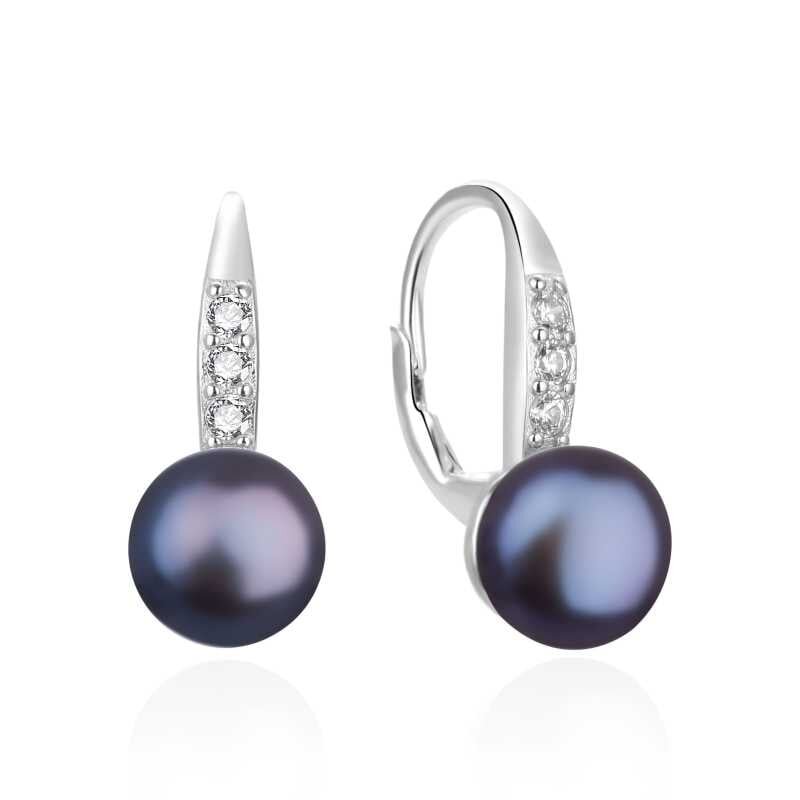 Půvabné stříbrné náušnice s tmavou perlou AGT-E233L-PBK Agato
