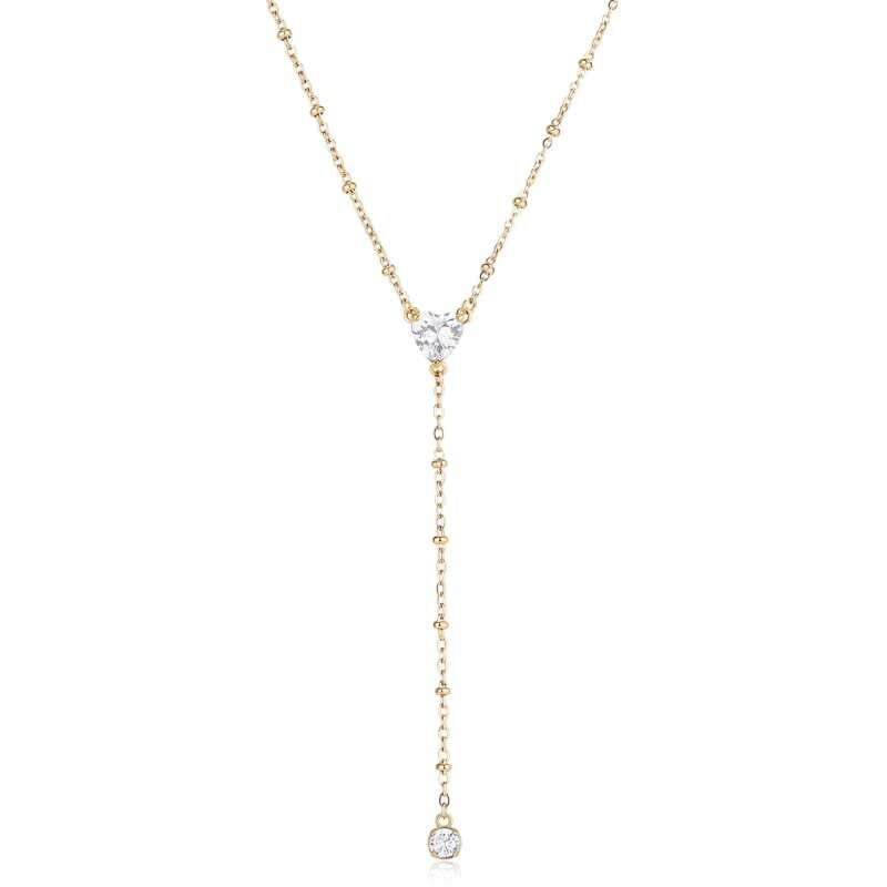 Romantický náhrdelník značky S`Agapõ přináší eleganci a rafinovanost, kterou oceníte při každé příležitosti. Vyrobený z vysoce kvalitní oceli s PVD úpravou ze 14K zlata, skvěle doplní váš outfit. Dlouhá řetízková ozdoba je osazena čirými kubickými zirkony, přičemž jeden z nich v designu srdce...