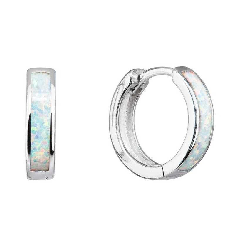 Slušivé kruhové náušnice s bílými syntetickými opály 11402.1 Evolution Group