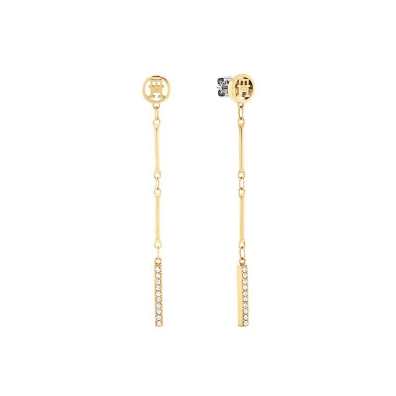 Visací pozlacené náušnice se zirkony Bar Chain 2781002 Tommy Hilfiger
