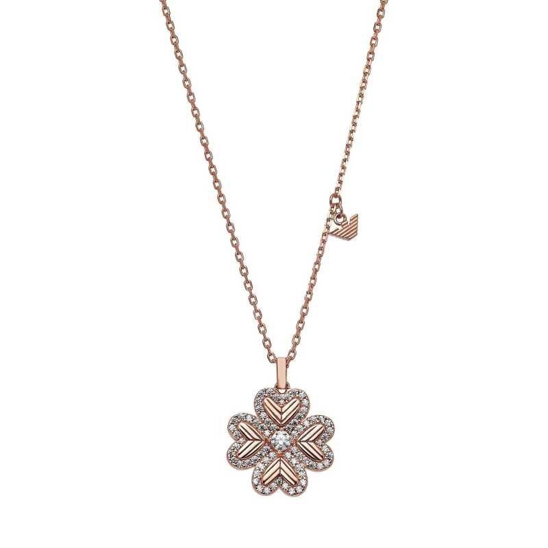 Krásný pozlacený náhrdelník Čtyřlístek se zirkony EG3609221 Emporio Armani