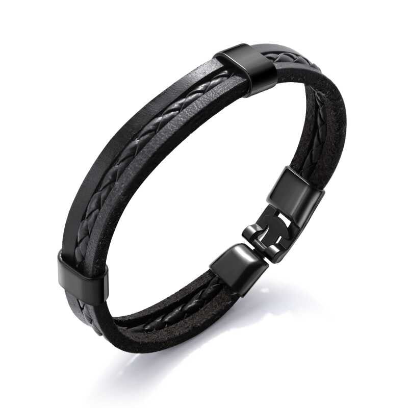 Černý kožený náramek pro muže Leather VPH1310 Troli