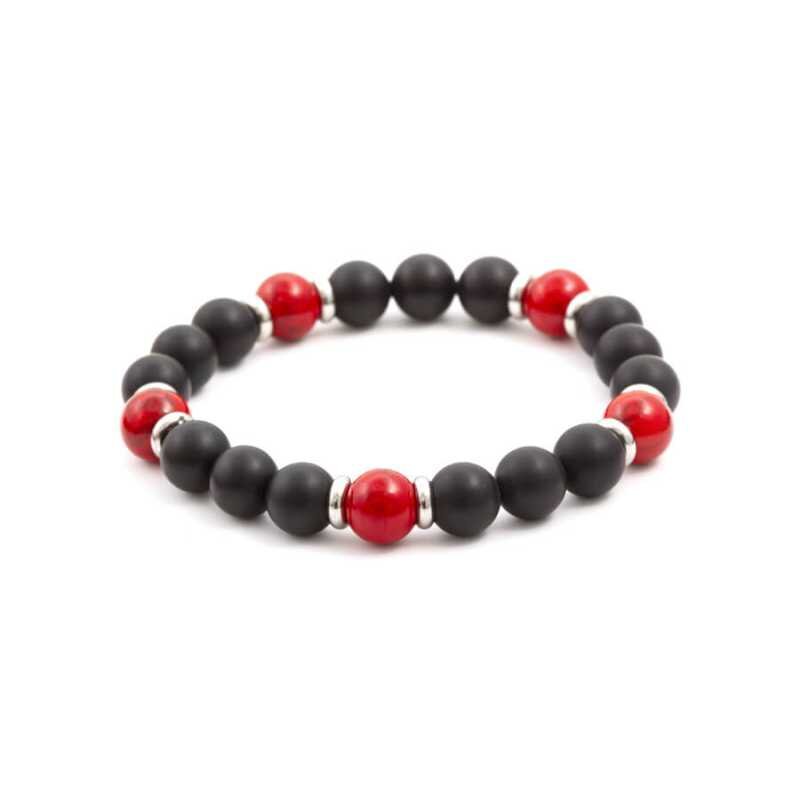 Náramek značky Agato spojuje elegance a pozitivní energii díky minerálním korálkům černého matného achátu a červeného howlitu. Tento nadčasový šperk, s délkou 17 cm a průměrem korálku 0,8 cm, se díky pružné gumičce pohodlně nosí a skvěle doplní váš outfit. Achát stabilizuje a dodává odvahu,...