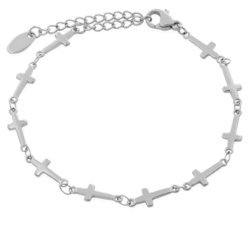 Elegantní dámský náramek od značky Troli přináší spojení moderního designu a kvalitních materiálů. Vyroben z odolné oceli, je zdoben stylovými křížky, které dodají vašemu vzhledu šmrnc. Zapínání na karabinku zajišťuje pohodlné nošení po celý den. Tento náramek se skvěle hodí k různým outfitům a stane se vaším oblíbeným módním doplňkem, který osvěží každou příležitost.