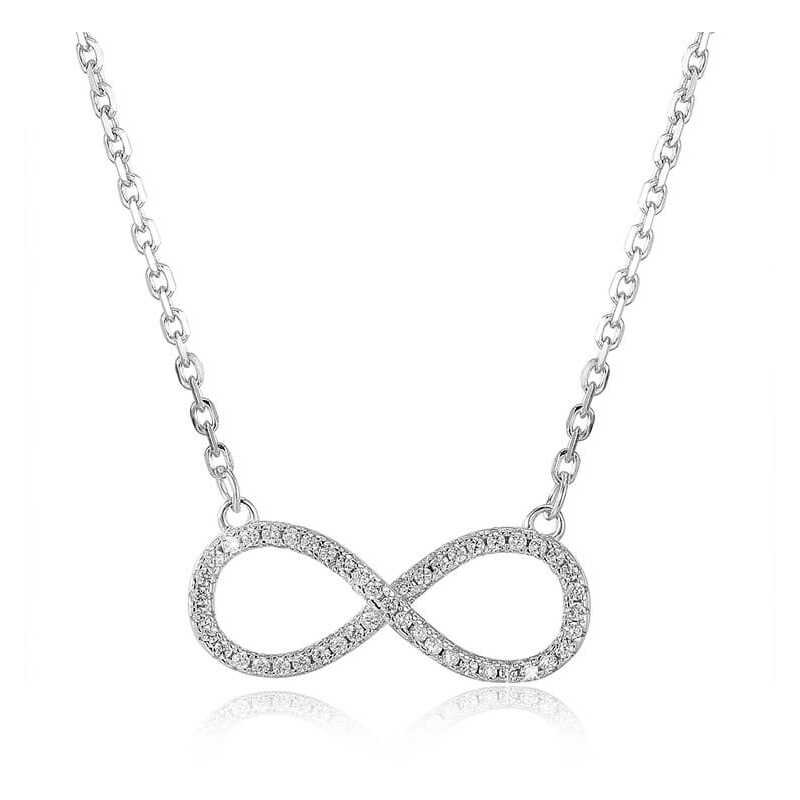 Elegantní náhrdelník značky Beneto, vyrobený ze stříbra s rhodiovaným povrchem, přináší nejen krásu, ale i ochranu před alergickými reakcemi. Jeho výrazný přívěsek ve tvaru nekonečna, osazený čirými krystaly, dodává šperku jedinečný lesk. S délkou 42 cm a možností prodloužení o 6 cm se skvěle přizpůsobí každému outfitu. Probuďte v sobě eleganci a styl s tímto nadčasovým kouskem.