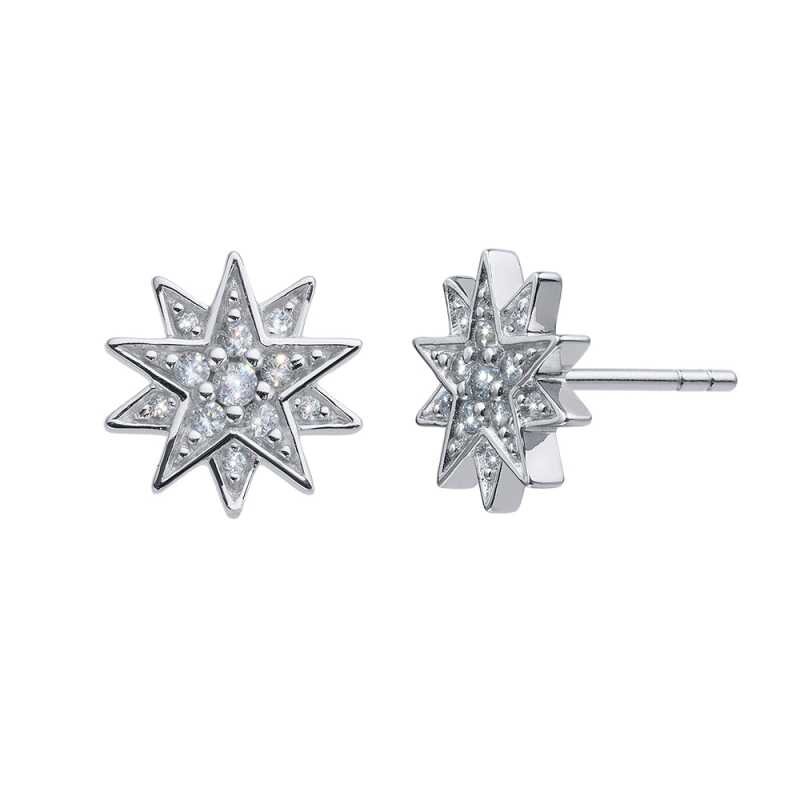 Třpytivé stříbrné náušnice Hvězda s krystaly Sisy 42134.S Crystalp