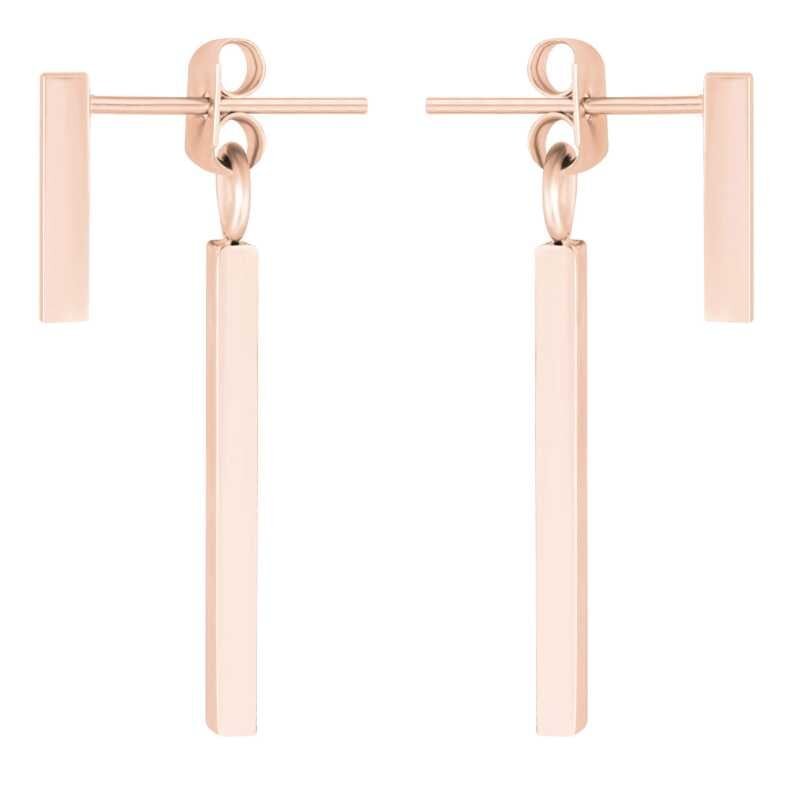 Růžově zlacené ocelové náušnice Hranolky Troli