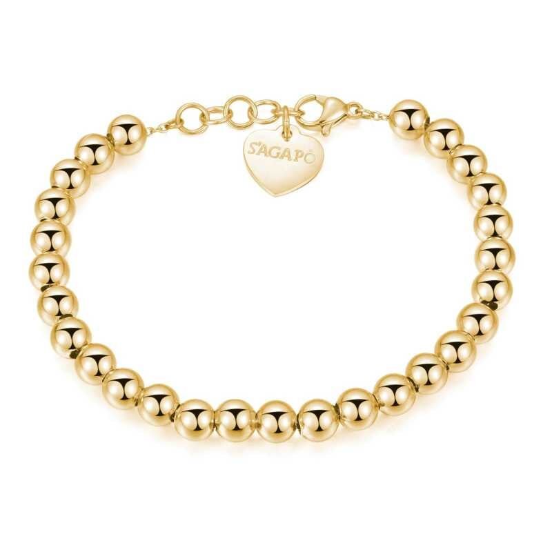 Dámský náramek značky S'agapõ je elegantním doplňkem, který dodá vašemu outfitu na osobitosti. Vyroben z kvalitní oceli a pokovený zlatým PVD povlakem, náramek se skládá z lesklých kuliček, které se jemně lesknou na slunci. Jeho délka 19,5 cm zajišťuje pohodlné nošení a zapínání ve formě srdíčka...