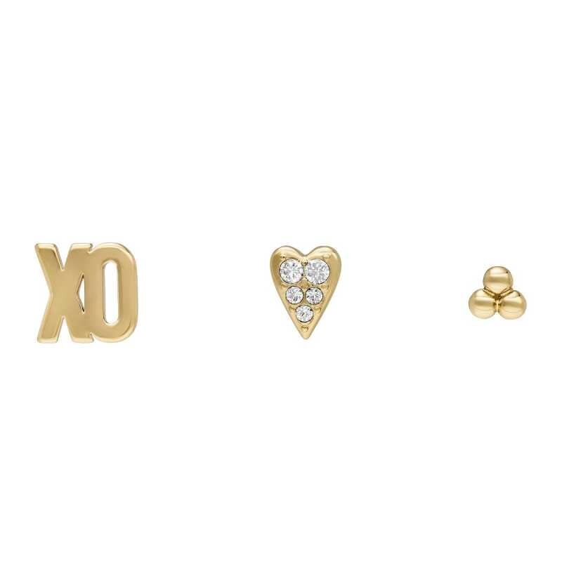 Elegantní sada náušnic značky Fossil přináší sofistikovaný design, který osvěží váš šperk. Tři peckové kousky z kvalitní mosazi s luxusním zlatým PVD pokovením se skvěle hodí pro každodenní nošení i slavnostní příležitosti. Tvar písmen "XO", srdíčka s kubickými zirkony a drobné kuličky dodávají...