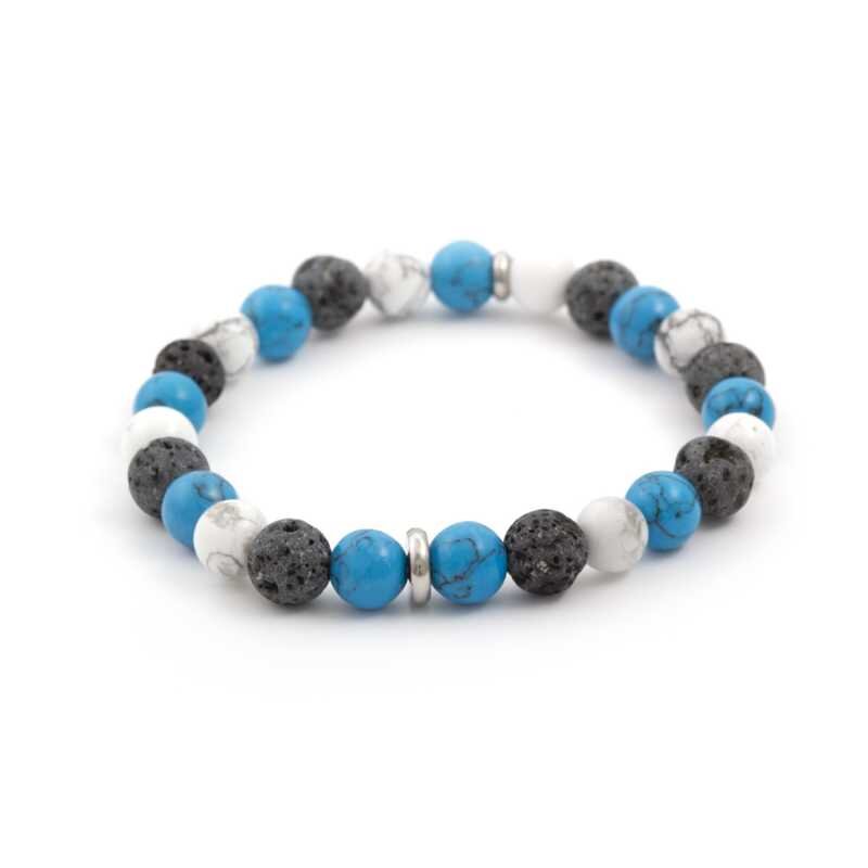 - Materiál: howlit, lávový kámen, ocel