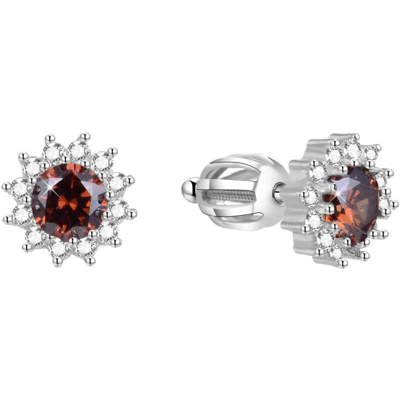 Náušnice značky Beneto přinášejí dokonalou kombinaci elegance a moderního designu. Vyrobené ze stříbra s rhodiovaným povrchem, tyto šperky minimalizují alergické reakce a zajišťují trvalý lesk. Zirkony na náušnicích dodávají třpyt, zatímco čokoládově hnědý kamínek v centru přitahuje pozornost....