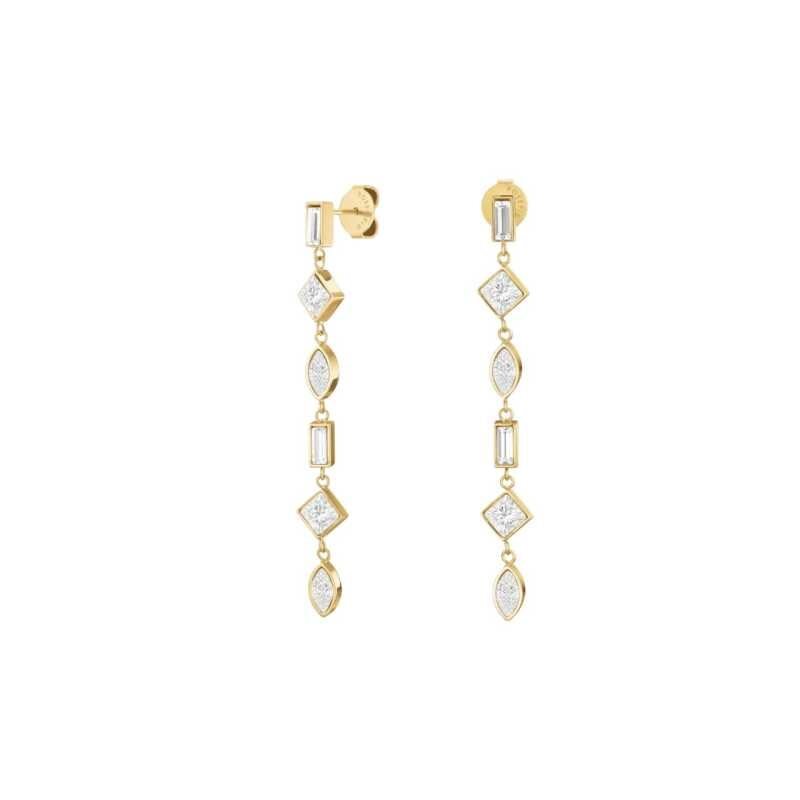 Elegantní náušnice značky Rosefield představují dokonalou kombinaci kvality a stylu. Vyrobené z odolné oceli a pozlacené žlutým zlatem, tyto šperky vynikají krystaly v moderních geometrických tvarech, které dodávají náušnicím jedinečný lesk. S rozměry 0,68 x 5,5 cm a bezpečnostním zapínáním na...