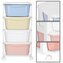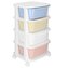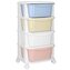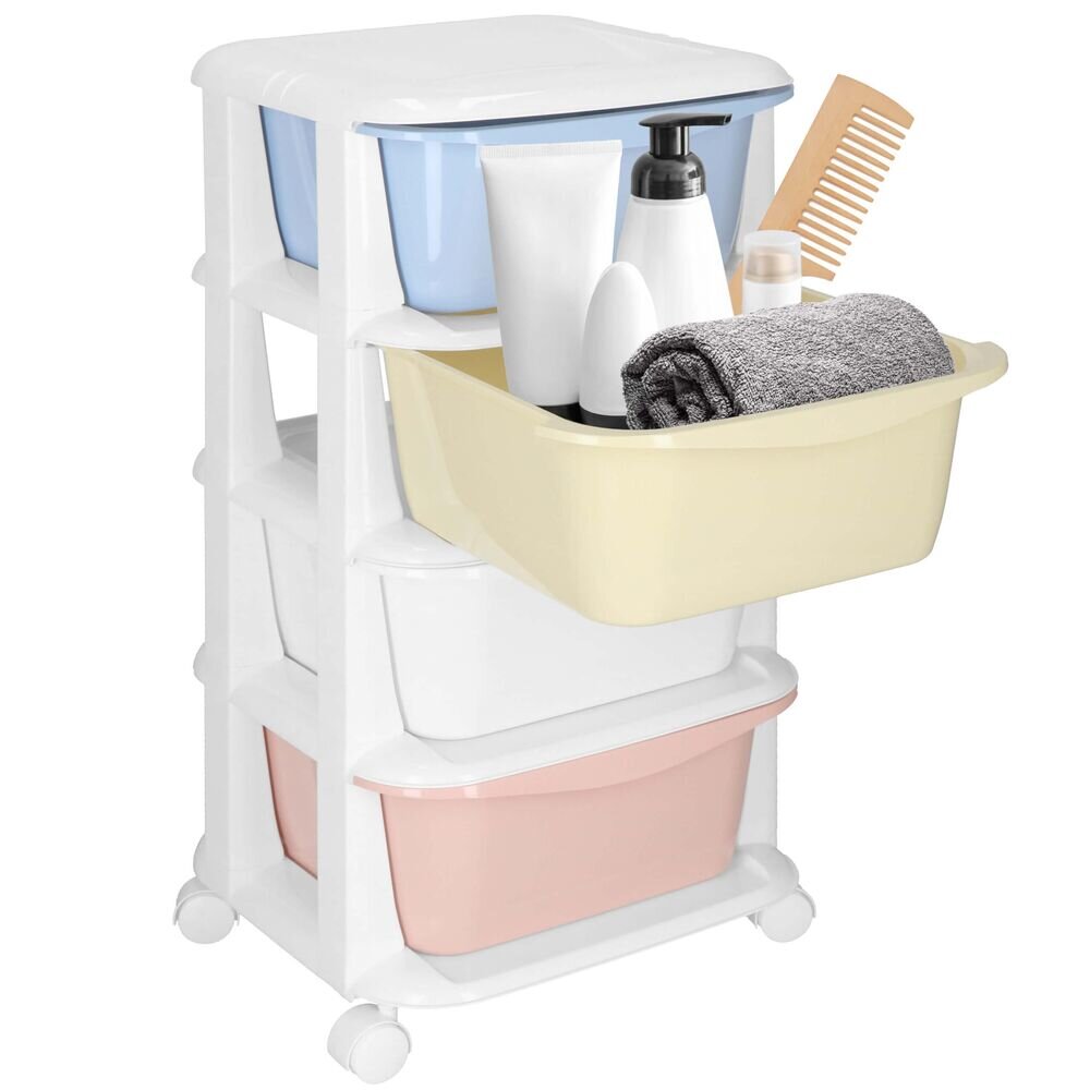 Základní údaje Značka: Springos® Materiál: plast Barva rámu: bílá Barvy zásuvek: červená, bílá, žlutá, modrá (pastelová) Barva kol: bílá Maximální nosnost: 20 kg (5 kg na zásuvku) Počet zásuvek: 4 Rozměry: Celková výška: 73 cm Šířka: 36 cm Hloubka: 35 cm Tloušťka okraje: 4,5 cm Průměr koleček: 4...