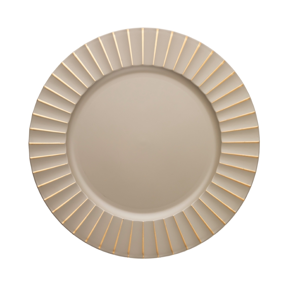 PODKŁADKA POD TALERZ KARBOWANA ŚR. 32,5 CM BEŻOWA ZE ZŁOTĄ LINIĄ