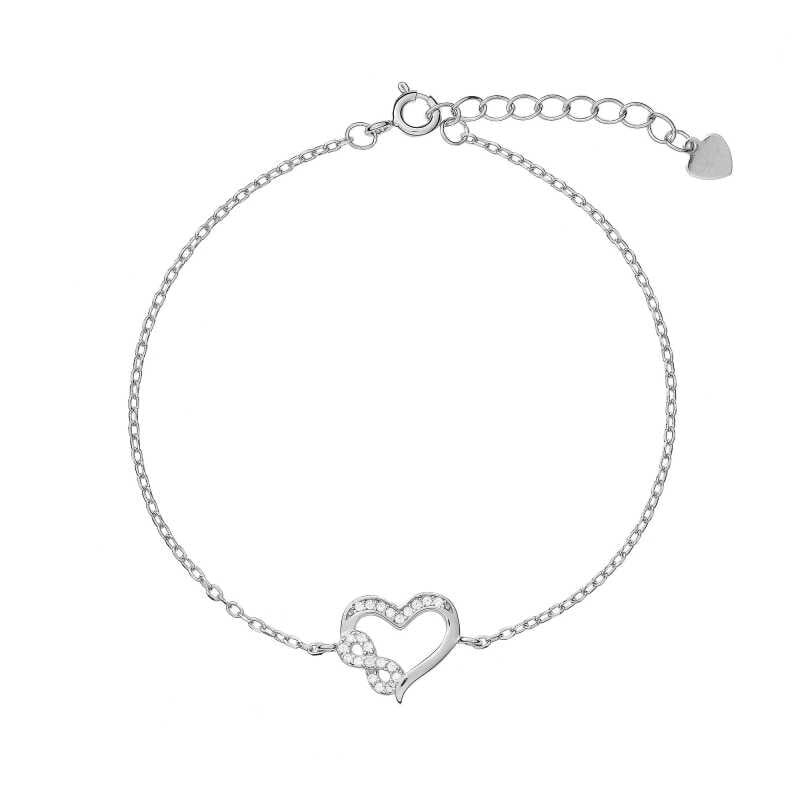 Náramek AGAIN Jewelry je dokonalým spojením elegance a romantiky. Vyroben ze stříbra s vrstvou rhodia, chrání před alergickými reakcemi a udržuje nádherný lesk. Ozdoba ve tvaru srdce se symbolem nekonečna, doplněná precizně broušenými kubickými zirkony, vytváří oslnivý efekt. S délkou 16 cm a možností prodloužení o 3 cm je ideálním dárkem pro vyjádření vaší nekonečné lásky.