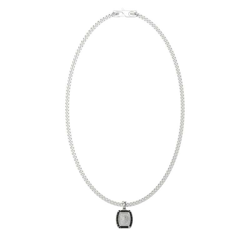 Tento elegantní pánský náhrdelník značky Guess je vyroben z kvalitní oceli, která zaručuje trvanlivost a styl. Dominantou je přívěsek v podobě hlavy lva, osazený černými krystaly, které dodávají šperku jedinečný nádech. S délkou 54 cm a průměrem přívěsku 1,6 cm se skvěle hodí k různým outfitům....
