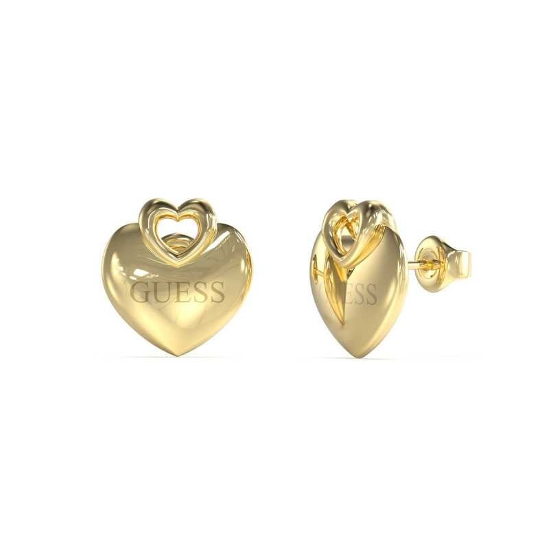 Srdíčkové náušnice z pozlacené oceli Crazy In Love JUBE05218JWYGT/U Guess