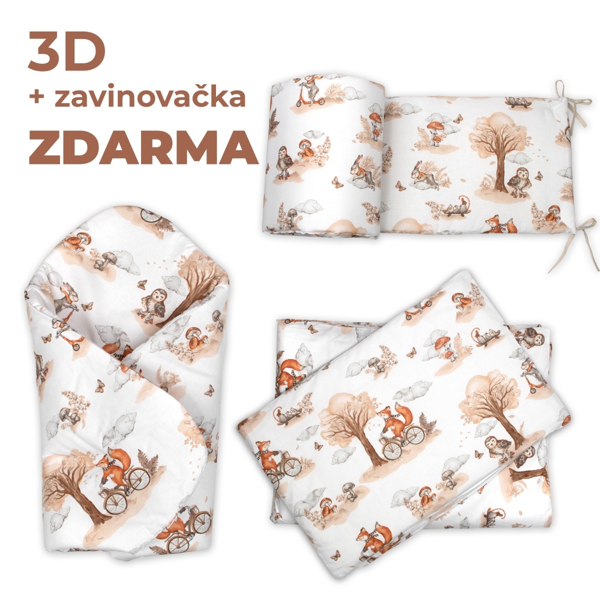 3D Mantinel s povlečením + zavinovačka zdarma, Liška, béžová,bílá, 135x100 cm; béžová, bílá; bavlna,hypoalergenní duté vlákno