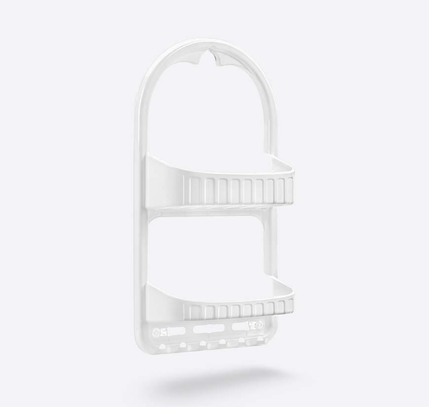 Dvoupatrová plastová police s háčky na zavěšení, určena k montáži na stěnu nebo pomocí přísavek. Rozměry 27 x 12 x 50 cm (Š x H x V). EAN weiter lesen