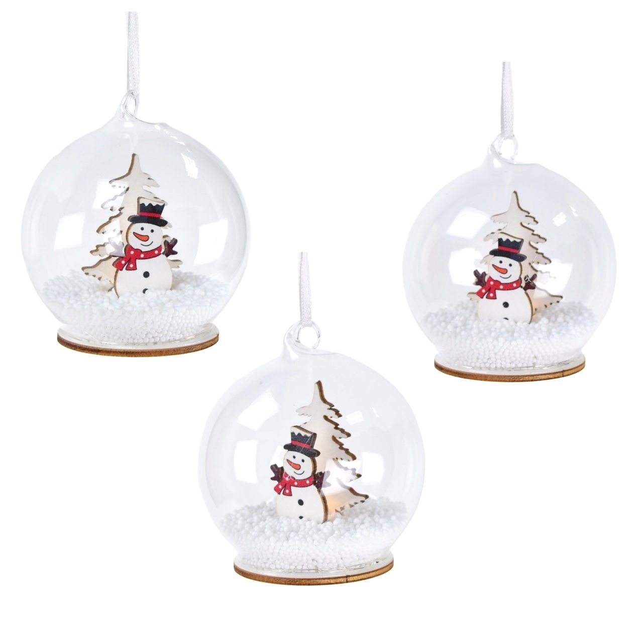 Koule se sněhulálkem LED Ø8 cm, set 3 ks