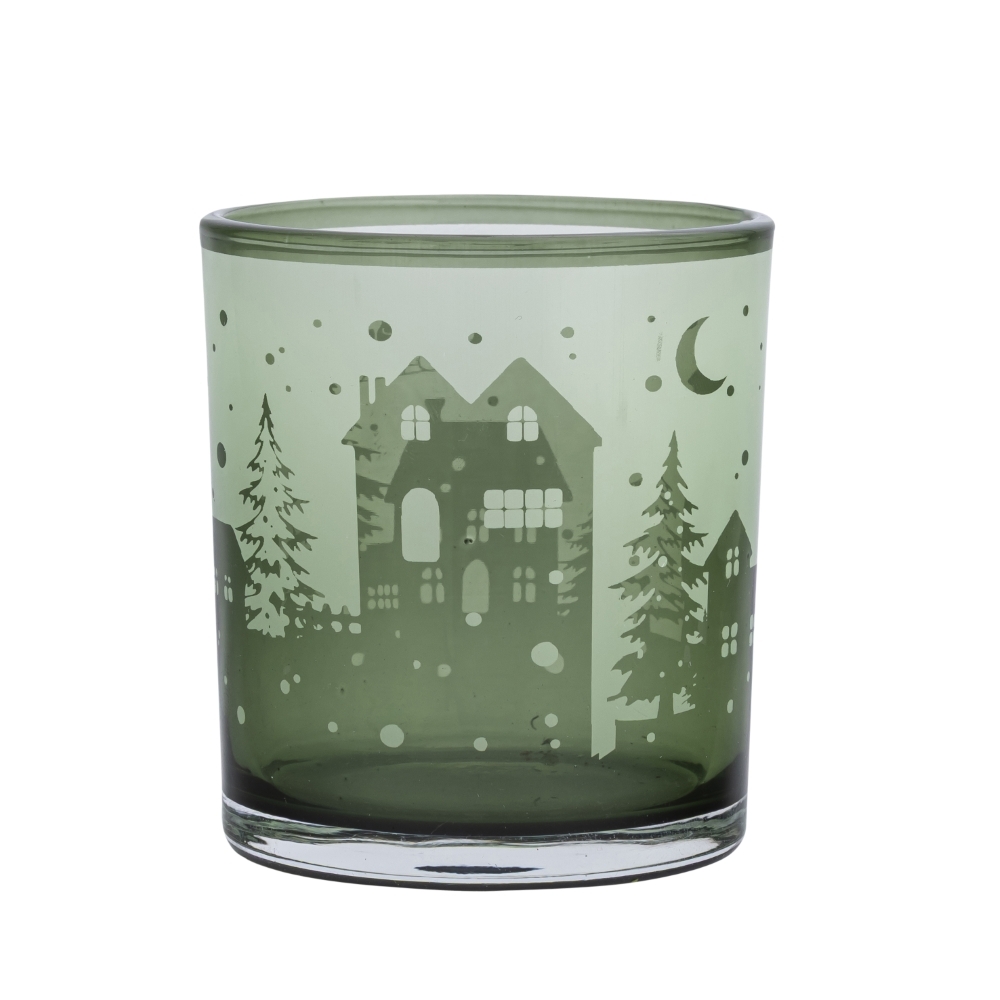 ŚWIECZNIK SZKLANY MLECZNY 7X7X8 CM DEK. RENIFER