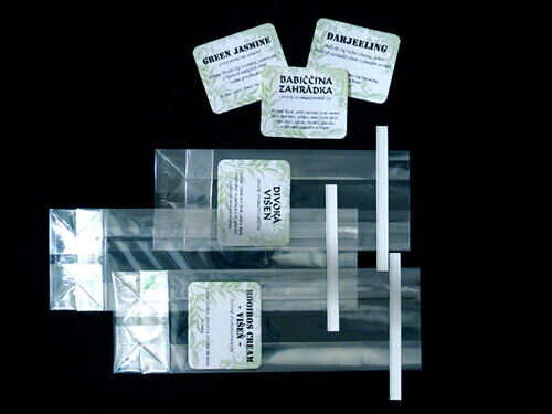 Celofánové sáčky s hranolovým dnem pro volně vážené čaje a kávu. weiter lesen