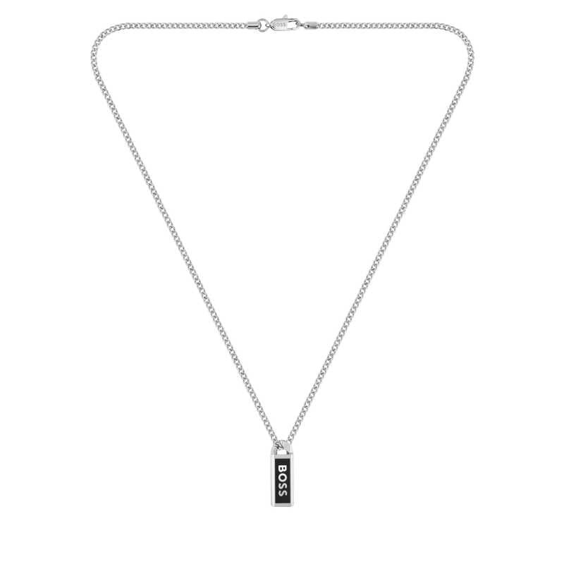 Pánský náhrdelník značky Hugo Boss přináší do vašeho stylu nádech elegance a sofistikovanosti. Vyrobený z kvalitní oceli, tento šperk se pyšní výrazným přívěskem s logem "BOSS", který je částečně zdoben černým smaltem. Délka 55 cm a praktické zapínání na karabinu zajišťují pohodlné nošení....