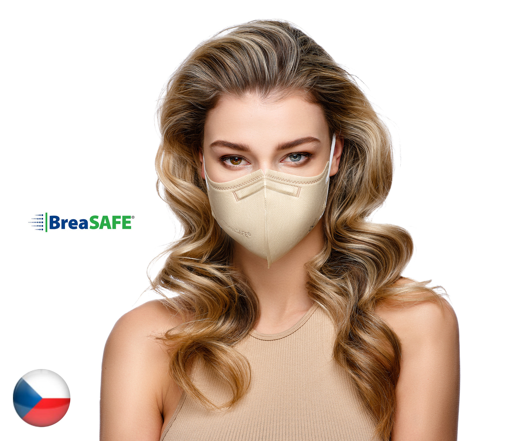 10x Český NanoRespirátor BreaSAFE® FFP2 - Znovupoužitelný -béžový L