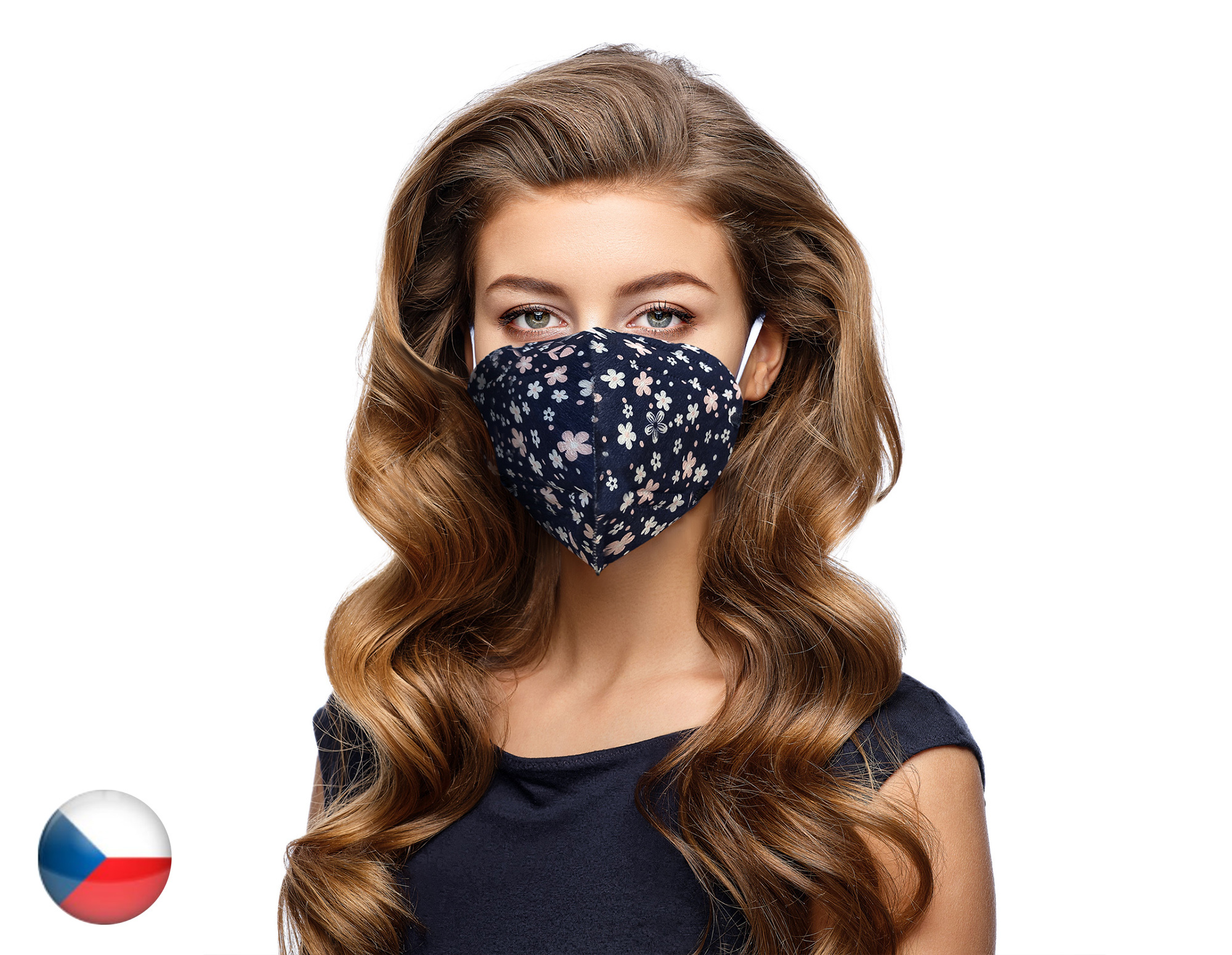 Český NanoRespirátor FFP2 -Modrá květina (č.8)