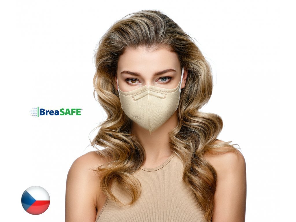 5x Český NanoRespirátor BreaSAFE® FFP2 - Znovupoužitelný - béžový L
