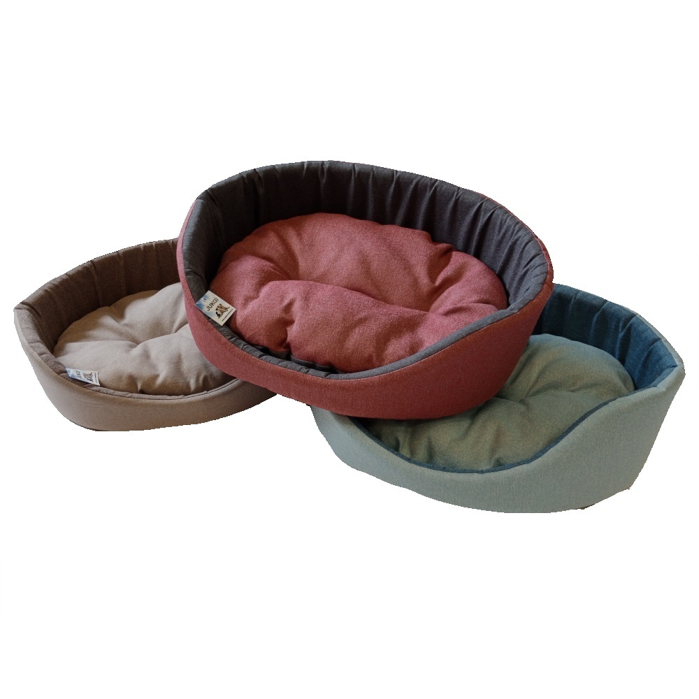 Látkový pelíšek pro psy ve tvaru oválu s vyjímatelným polštářkem.Uvnitř měkký polštářek, který izoluje psa od chladné podlahy. Díky polštáři je údržba pelíšku snadnější a je možné prát ho častěji, než celý pelíšek.Pro pohodlné lenošení a dobrý spánek a zároveň je i interiérovým doplňkem...