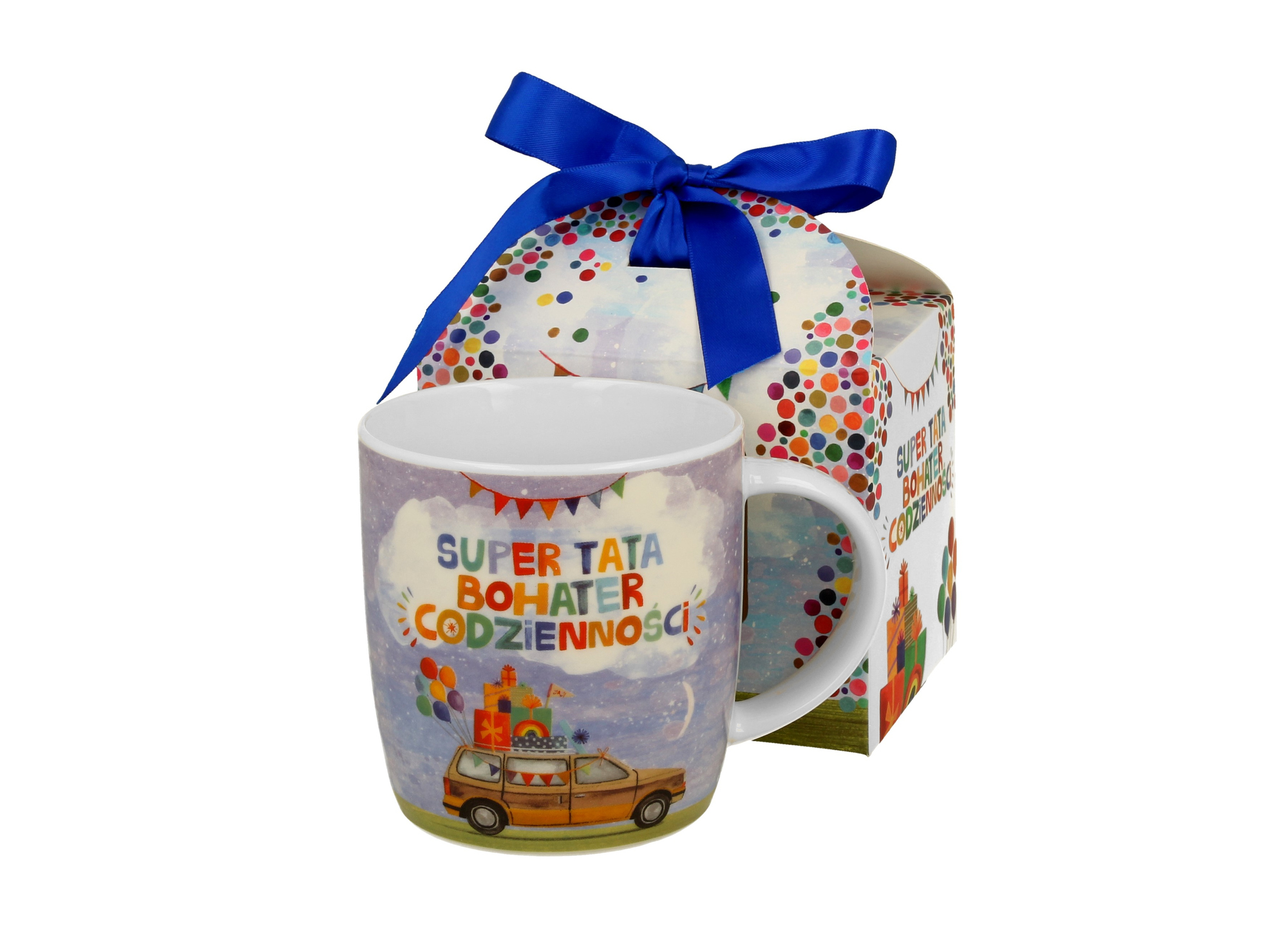 Kubek okazjonalny "SUPER TATA" w pudełku z kokardą