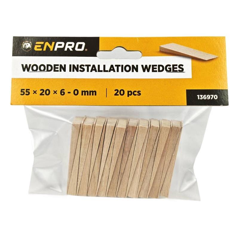 Klínky montážní dřevěné, 55 x 20 x 6 - 0 mm, 20 ks, ENPRO