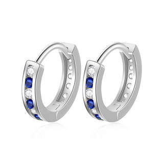 Dámské náušnice kroužky dekorované kubickými zirkony modré a čiré barvy. Náušnice jsou vyrobeny ze stříbra s jakostním označením 925/1000 povrchově upravené rhodiováním