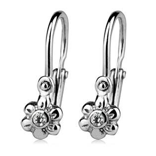 CS1050 Dětské náušnice stříbrné - kytičky malé, čiré zirkony - květiny