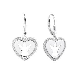 NB-3902 Stříbrné náušnice srdce s andílky - andílci