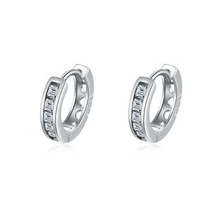 Drobné stříbrné náušnice ve malých kroužků dekorovaných zirkony čiré barvy