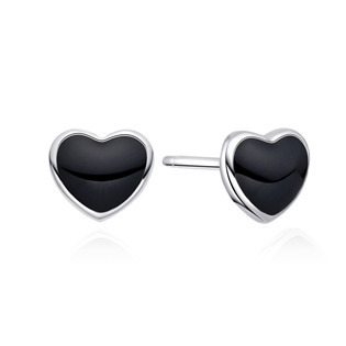 Náušnice jsou dekorované srdíčky s černým smaltovaným povrchem a jsou upraveny rhodiací