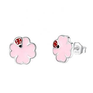 DN-0039 Dětské stříbrné náušnice čtyřlístky s beruškami