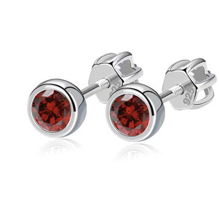 NB-3652-G Stříbrné náušnice, tmavě červené zirkony 4 mm