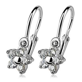 CS1001-CR Dětské náušnice stříbrné - kytičky, čiré zirkony - květiny