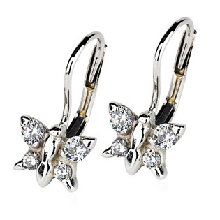 ZB3804-1 Dívčí stříbrné závěšné náušnice - motýlci