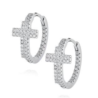 NB-3313 Stříbrné náušnice kroužky s křížem