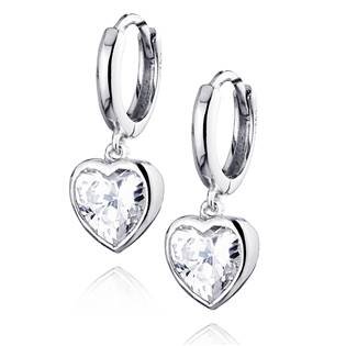 NB-3136 Stříbrné náušnice kroužky s visacími srdíčky - srdce