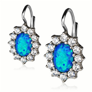 ZB33705-OP05 Stříbrné náušnice se zirkony a modrým opálem