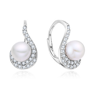 NB-3023 Stříbrné perlové náušnice se zirkony
