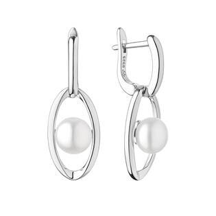 Dámské visací náušnice dekorované přírodními perlami bílé barvyNáušnice jsou vyrobeny ze stříbra ryzosti 925/1000 s povrchovou úpravou rhodiumRhodium patří mezi drahé kovy, takováto úprava brání černání náušnic a zamezuje alergickým reakcím.Náušnice jsou dodávány s dárkové krabičcepovrchová...